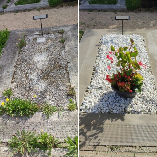Les sépultures sont nettoyées avec des produits écologiques afin de préserver notre environnement et le monument entretenu. Nous n’utilisons pas de Karcher qui pourrait endommager la pierre et les joints du monument.