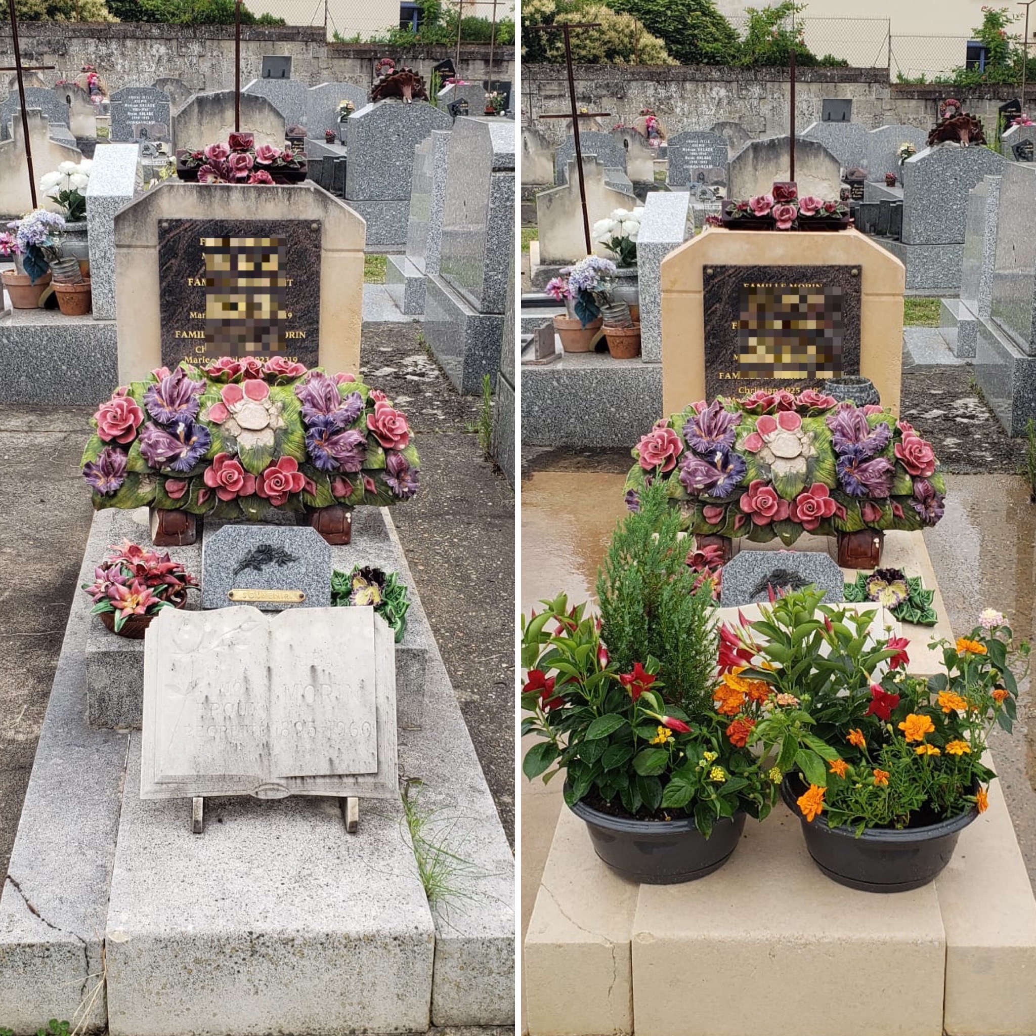 Chaque intervention comprend un nettoyage méticuleux, un désherbage précis, un fleurissement adapté aux saisons, ainsi qu’un rapport photographique avant/après garantissant une transparence totale pour les familles, même à distance.